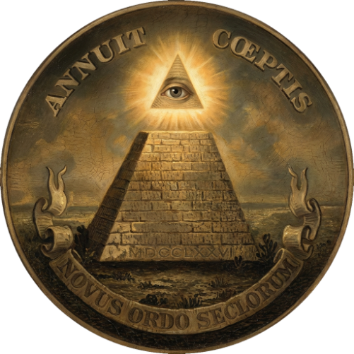 placed on the back of the $1 bill (1935). It marks the moment when this "Reverse" side was pulled out of the archives and placed into the hands of every citizen, coinciding with the rise of the modern administrative 'deep' state. It lies in shadow on the back of the most ubiquitous currency of the realm.