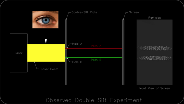 The deeper physicists look, the more they see that the atom is really only a set of mathematical probabilities, orbital geometries, electromagnetic charges, and strong, weak, and gravitational forces. The double-slit experiment shows that it is impossible to observe an atom without changing it. This implies that the observer is not separate from the observed—that consciousness is intrinsic to the fabric of reality.